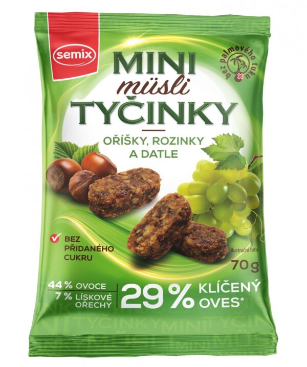 MINI MÜSLI TYČINKY S ORECHMI BEZ LEPKU 70 G, SEMIX 70 g SEMIX